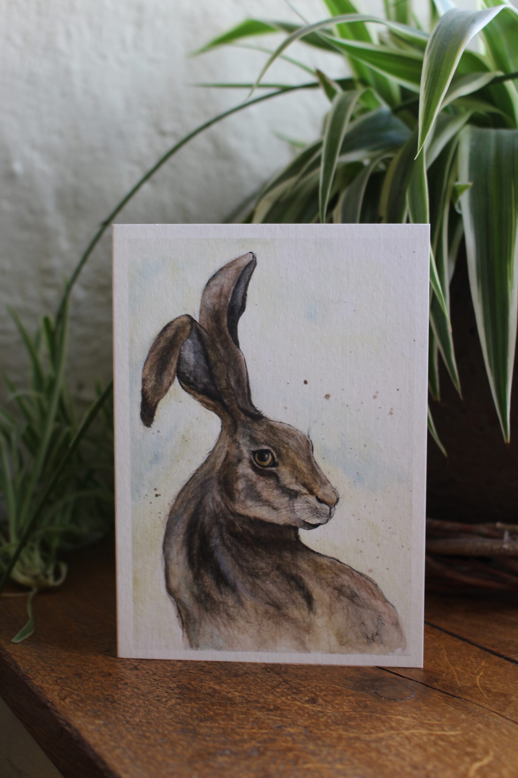 From the original “Noise Underfoot” Hare painting, this A6 sized card is reproduced using high quality Giclee printing produced in Anglesey, North Wales. These cards are blank for your own chosen use and come individually cellophane wrapped with an envelope.